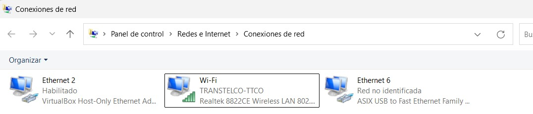 Debemos identificar la red por la cuál está conectada físicamente la terminal, en éste ejemplo “Ethernet 6”, así como nuestra red con salida a internet; “wi-fi” para este caso.