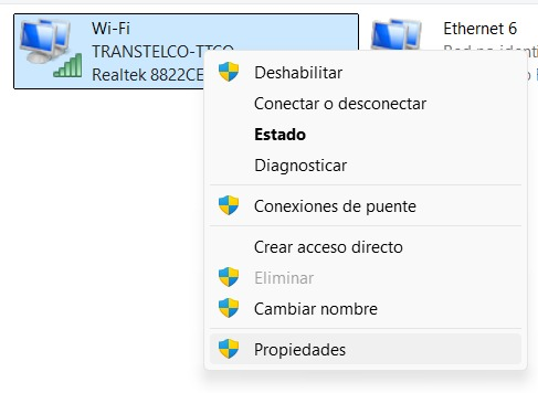 2.- Acceder a las propiedades del adaptador con salida a internet.