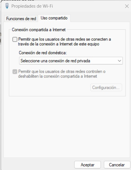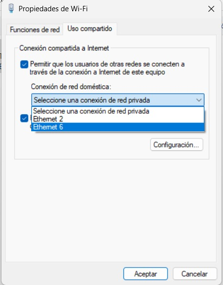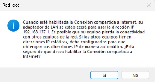 Paso 2: Compartir salida de internet a la terminal desde la computadora (windows) por medio de conexión ethernet.